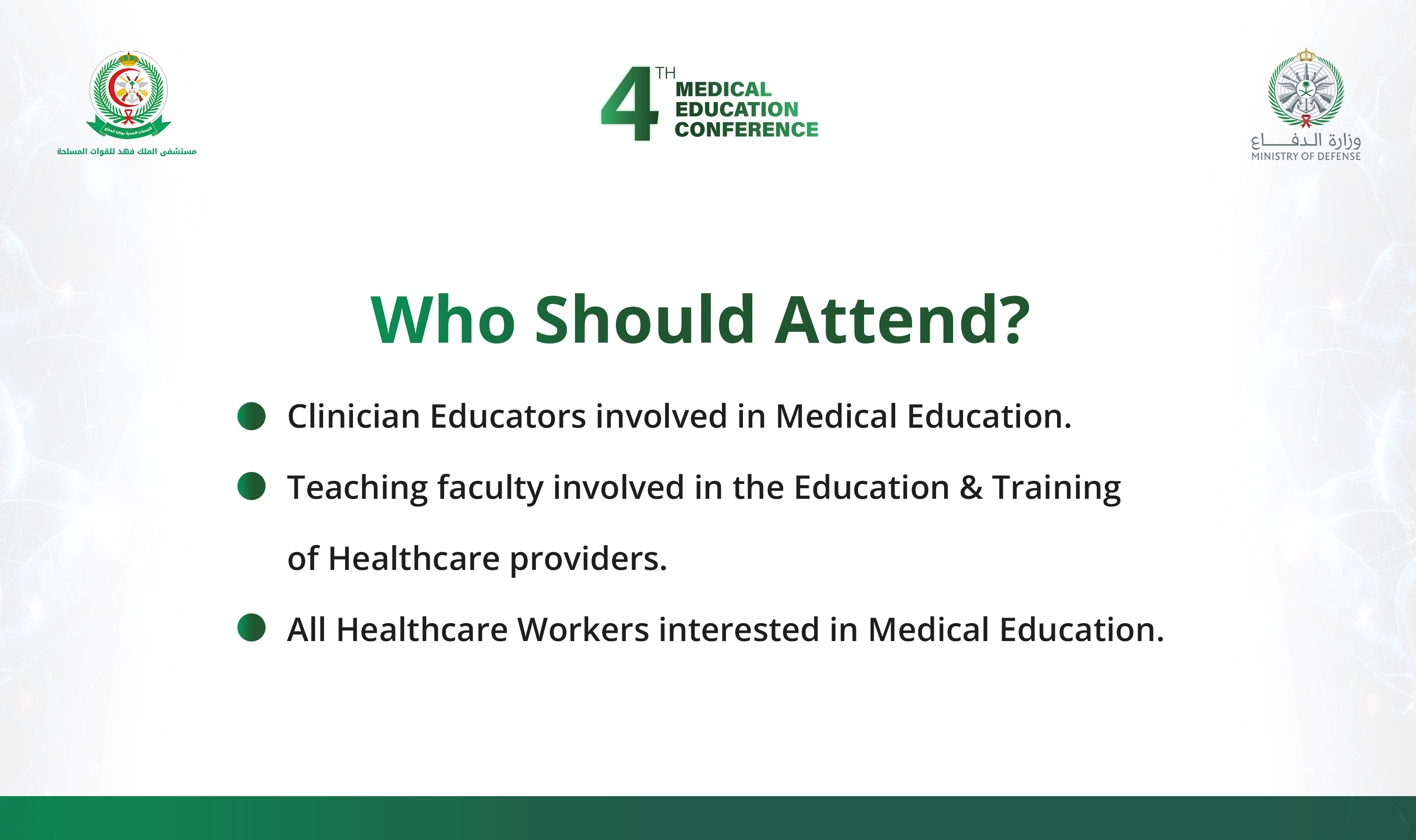 يسعدنا أن نرحب بكم في المؤتمر الرابع للتعليم الطبي، الذي يستضيفه مستشفى الملك للقوات المسلحة بجدة، ويهدف إلى الارتقاء بجودة التعليم الطبي، ودعم مسارات الابتكار، والتمكين، والاستدامة.