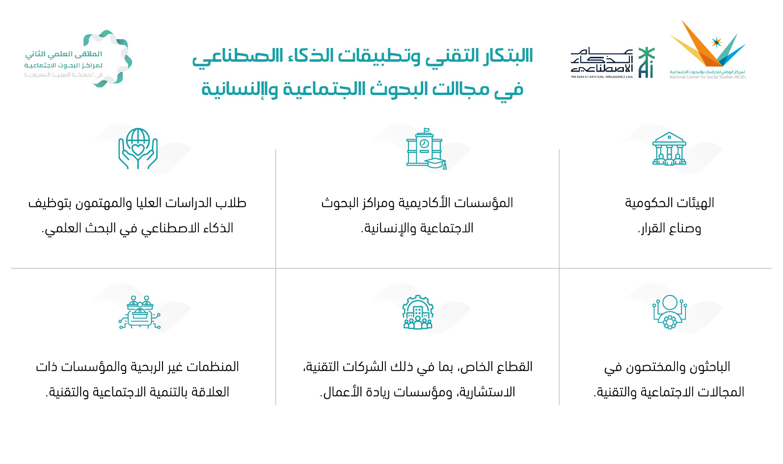 Building on the strategic objectives of the National Center for Social Studies and Research, and extending the pioneering role of the Coordinating Council of Social Research Centers in the Kingdom of Saudi Arabia in supporting and advancing social research, the convening of the Second Scientific Forum comes as a timely initiative. It aims to shed light on the reality of technological innovation and AI applications, explore their prospects, and address the challenges of employing them in social and human research.